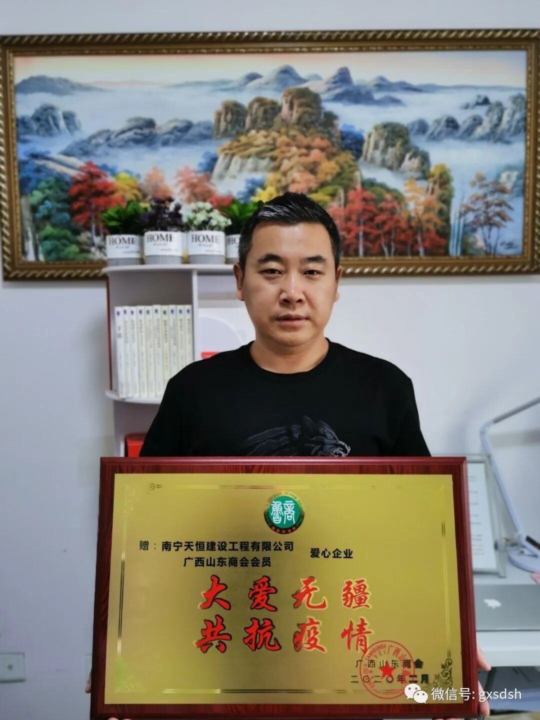 会长贾全顺代表商会对在抗击疫情期间奉献爱心的企业,表示衷心的感谢和崇高的敬意。为此,商会特授予爱心企业荣誉称号。