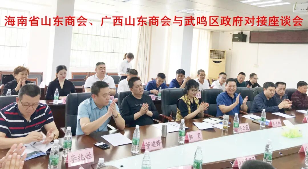 28日上午,海南省山东商会考察团在我会执行会长兼代理秘书长李元林、执行会长、北海分会会长朱义东、常务副会长、党支部书记王士学、常务副会长田开明、副会长何其栋、仲维海、张士行、我会执行会长单位广西宏发重工机械有限公司副总经理薛俊杰、副秘书长李凯捷、办公室副主任林秦秀陪同下,前往南宁市武鸣区进行参观考察,受到了武鸣区政府副区长陆耀忠,城区投促局、城区经信局、自然资源局、住建局、科技局、伊岭工业委、广西富明集团、文体旅游局等各部门的分管主要领导热情接待,并在城区政府会议室召开对接座谈会。会议由城区投促局局长韦翔智主持。