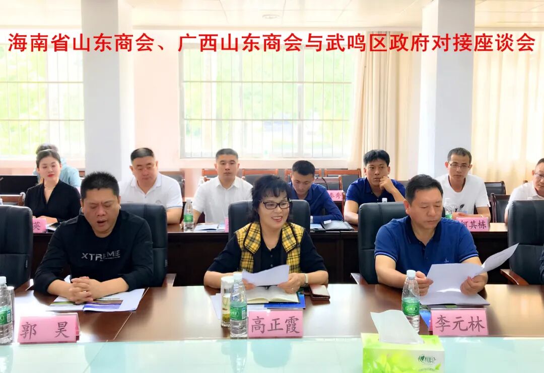 海南省山东商会秘书长高正霞介绍了27日与我商会各位企业家座谈交流的情况、海南省山东商会的发展概况和未来思路,看到武鸣区的一些有利优势,给大家留下很深的印象。如果有意向来投资发展请各位企业家多支持。同时欢迎广西的领导到海南指导工作。