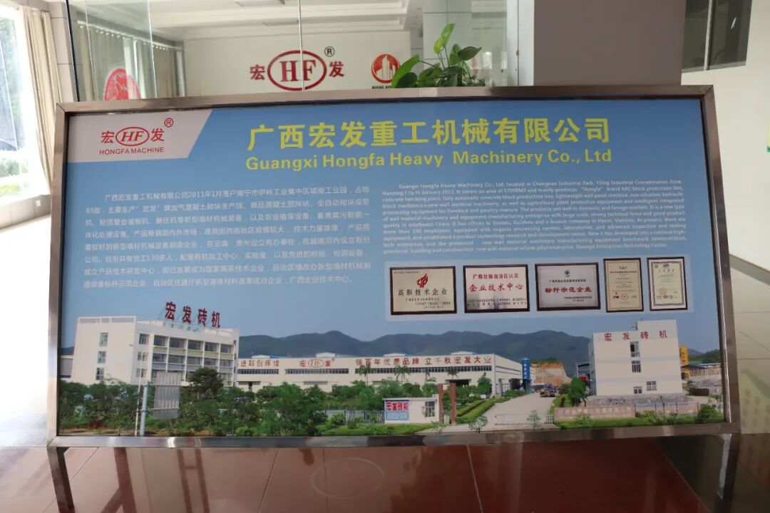 广西宏发重工机械有限公司创建于1990年,在山东临沂、广西南宁拥有两家机械装备制造厂、两家环保建材生产基地,占地630亩,厂房18万平方米,集研发、生产、销售于一体专业生产新型环保、建材机械装备制造企业,产品有“宏发”牌装配式板材机械、加气混凝土砌块生产线、混凝土搅拌站、全自动砌块成型机、静压机、石英石板材机械、粪污处理处理设备等7个系列30多品种。现有员工760多人,其中高级技术人员21人,中级技术人员53人,技术力量雄厚,产品质量过硬,畅销国内外市场,在行业内有较高知名度及良好口碑。