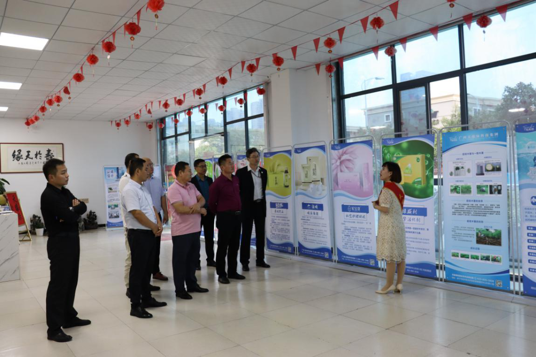 下年4:30分,商会成员陪同宋主任一行参观了广西天绿元素生活体验中心,并观看了公司产品宣传片,贵公司总监李丰向宋主任一行介绍了公司的发展历程、企业文化,随后,参观了天缘绿集团总部办公环境,和产品展示区。广西天缘绿科技集团下辖多家子公司,由广西绿泽控股,是一家集种植、研发、生产、销售于一体的现代化生物科技企业。2019年入驻经开区,并被列入南宁市大健康产业重大科技项目,公司前期总投资5000万,购置绿港国际中心现代化办公楼。公司建立专属现代化GMP食药生产基地,10万等级的现代化无尘车间,从德国引进行业领先科研、生产萃取及灌装设备。
