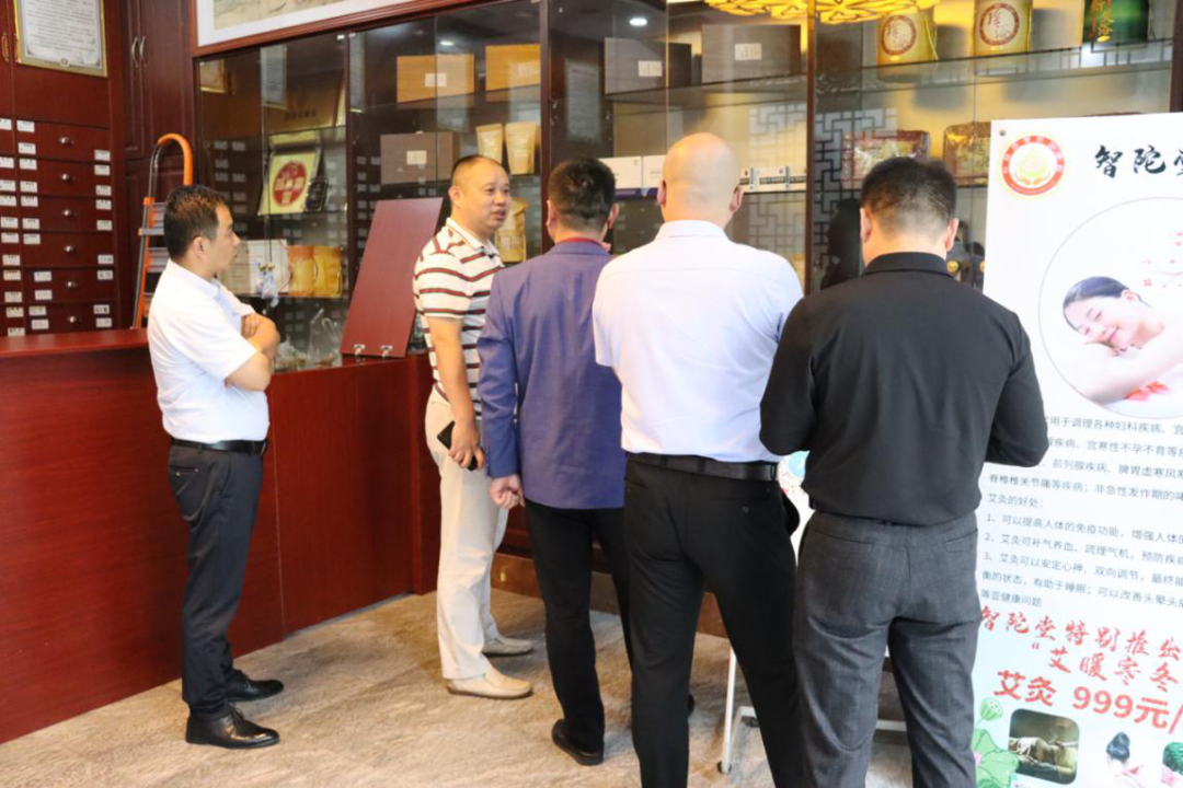 下午2:30,商会代表陪同聊城阳谷“双招双引”专班(城建文旅医养)主任宋义春一行参观了我会常务副会长企业——广西中莘宝实业有限公司广西智坨堂中医馆,公司董事长刘智热情接待,首先观看了贵公司在河池巴马康养项目基地宣传片,随后,在刘董事长的陪同下参观了公司办公环境和经营场所,参观结束后,并组织座谈交流,会上,刘董事长向宋主任一行介绍了公司的经营情况、经营理念、发展方向等事项,宋主任表示听了刘董事长的详细介绍,充分感受中医养生学的文化和魅力。对刘董事长公司取得的成绩给予高度肯定,并欢迎刘董事长及各位老乡适时回乡投资发展。